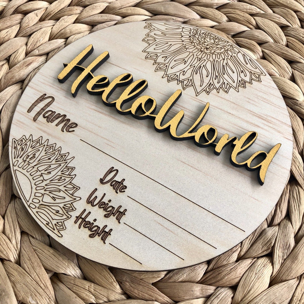 Our Hello World Birth Announcements are the perfect way to celebrate your baby’s arrival. They come with enough room to write all the details of their birth. This unique statement piece is the perfect addition for your pictures, shelves or nursery. They also create lasting mementos to pass down from generation to generation.