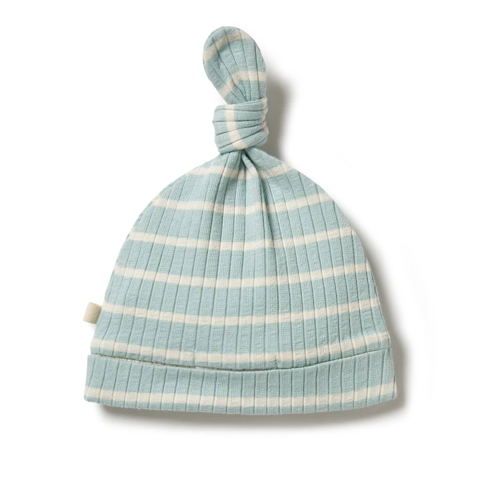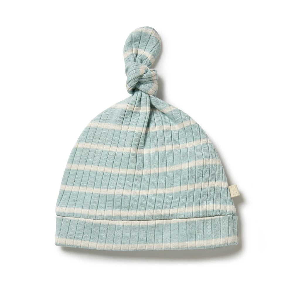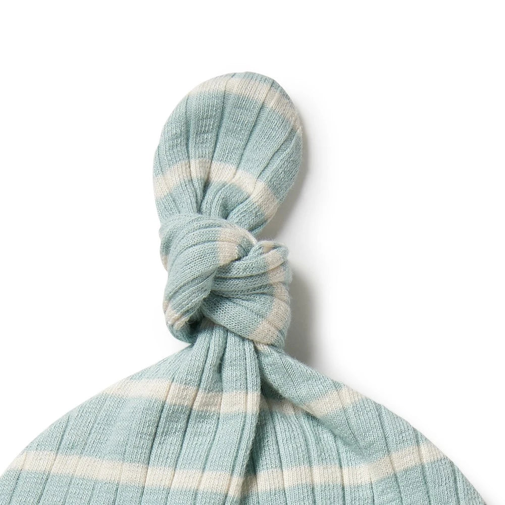 Pistachio/ Ecru Organic Stripe Rib Knot Hat SS21