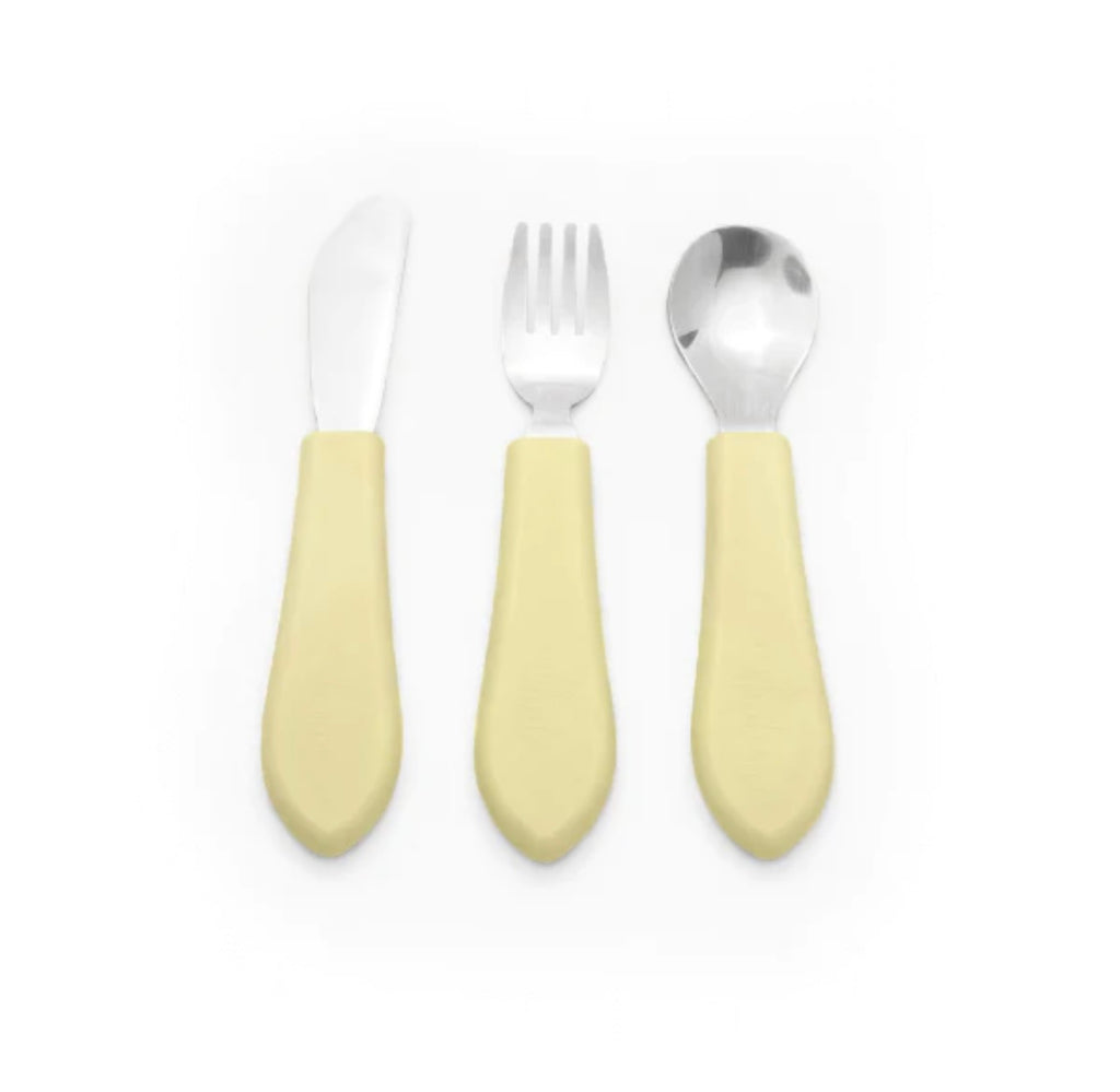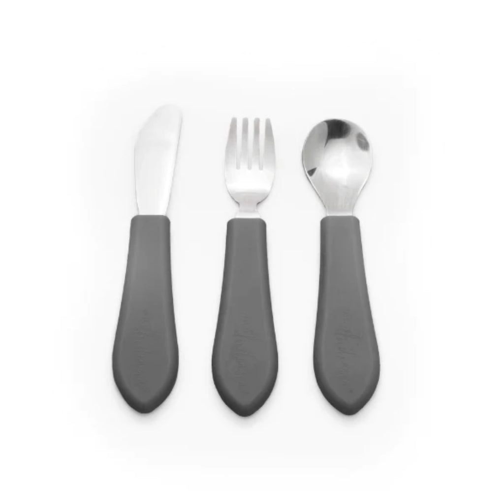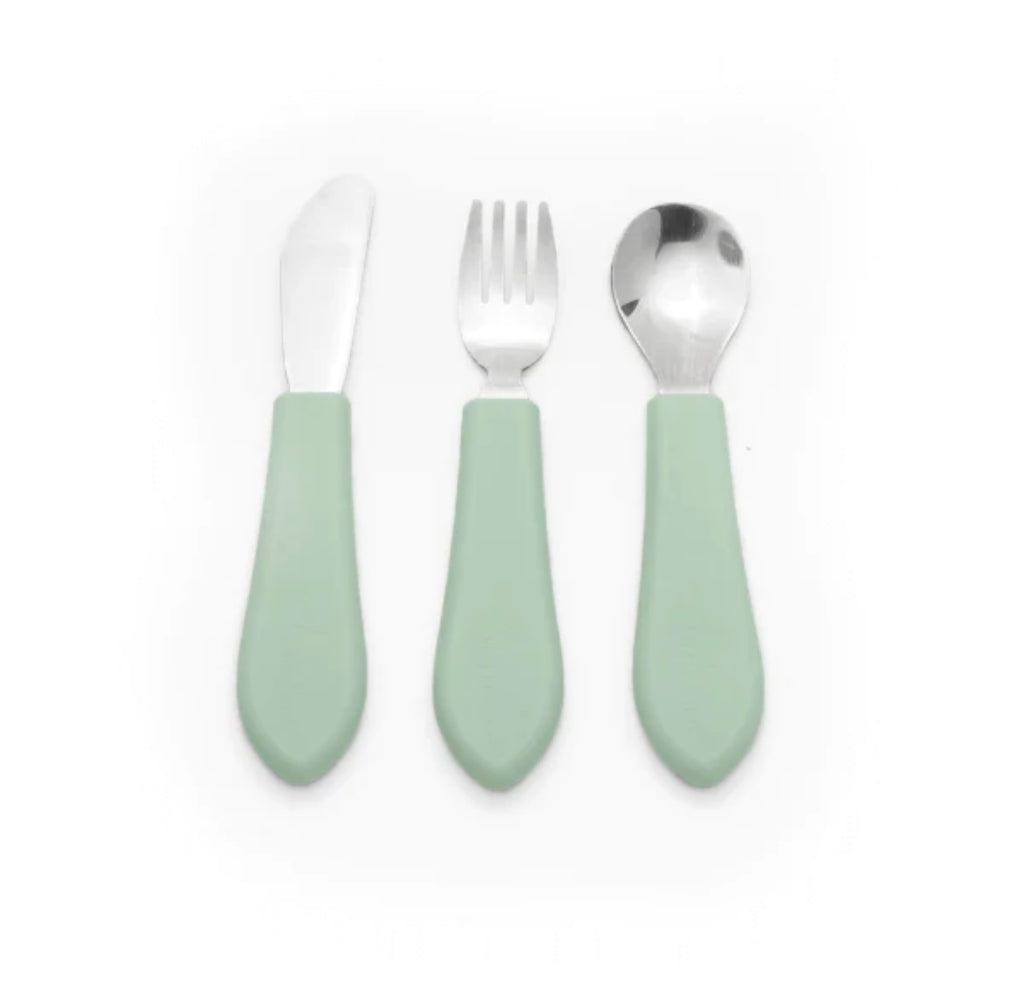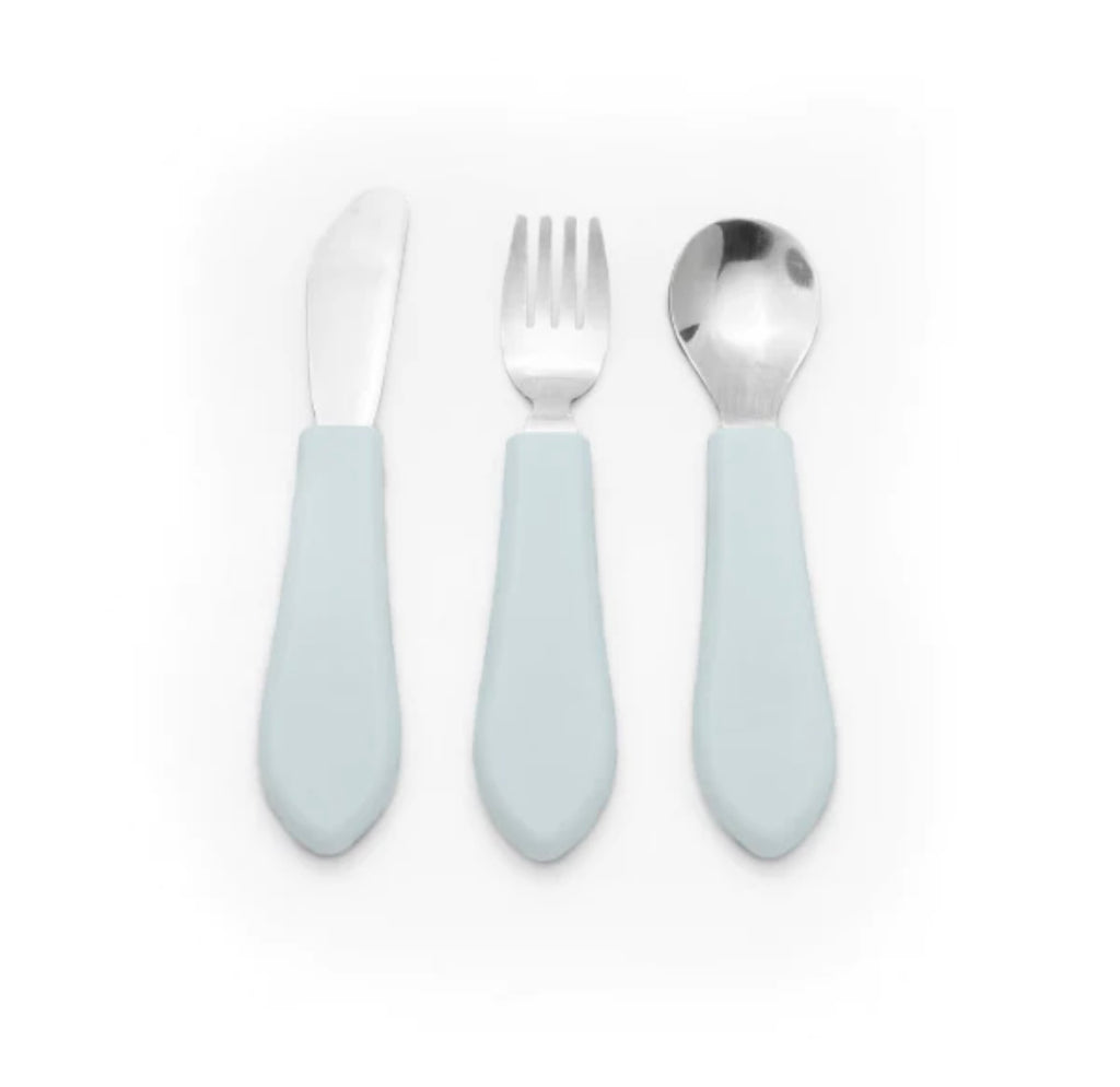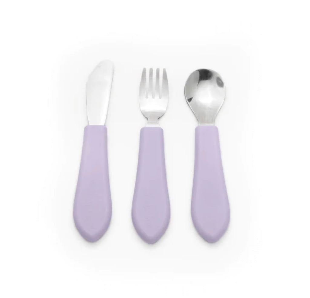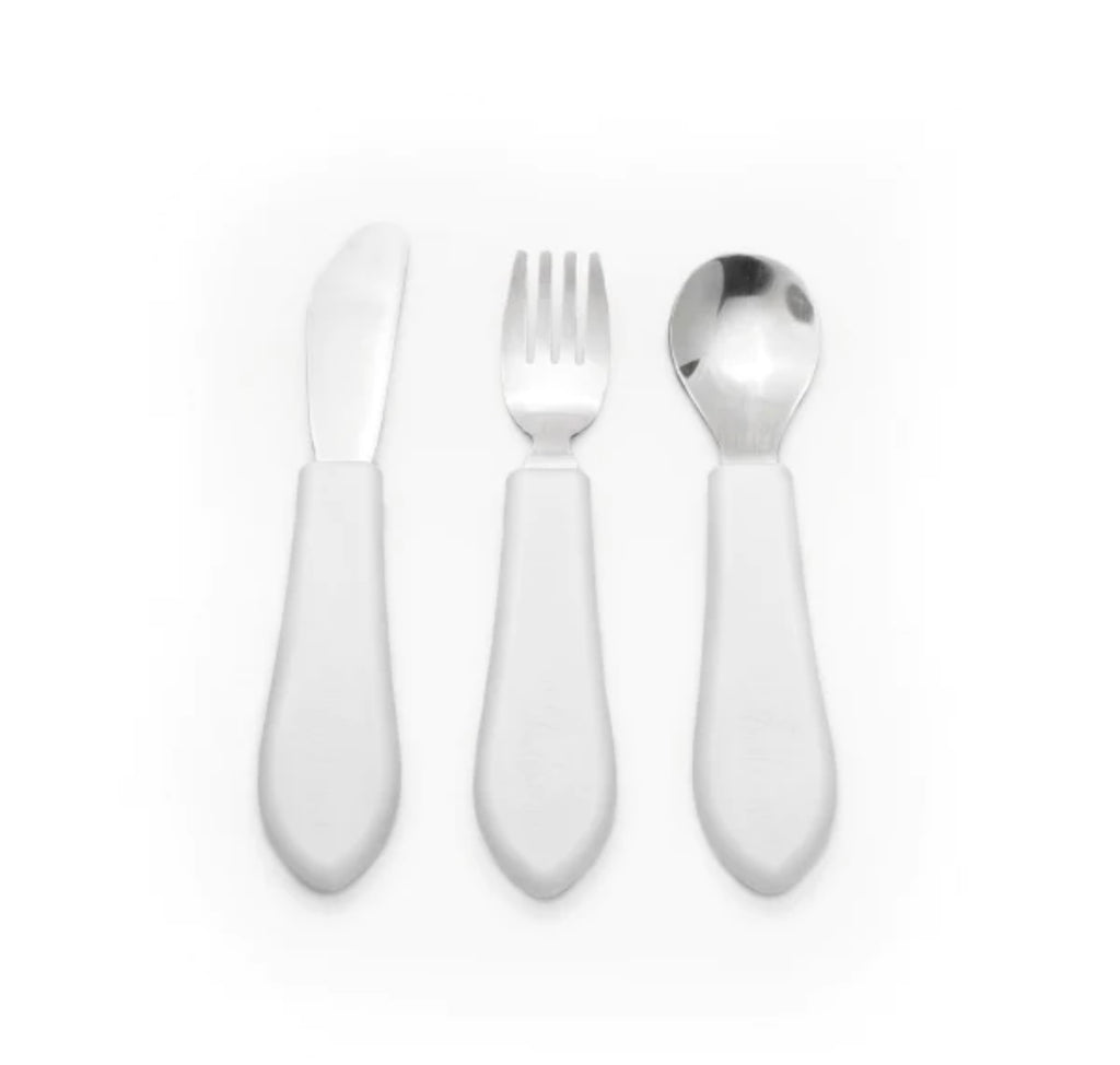 Our custom-designed cutlery has a soft silicone handle with a stainless steel component, perfect for your babe as they learn to master cutting and self-feeding!