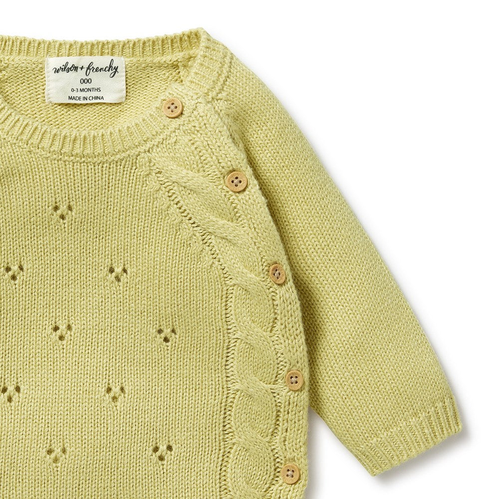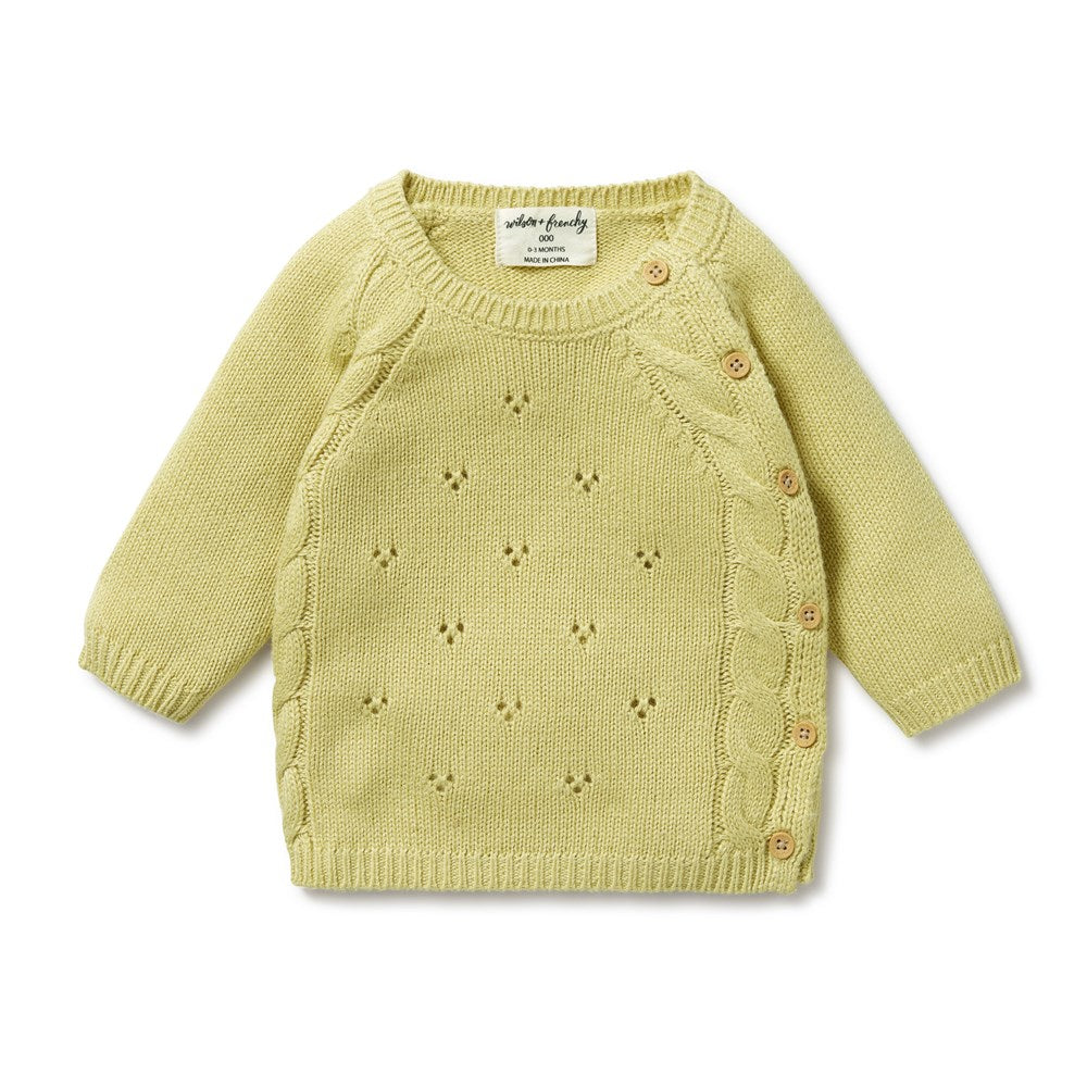 A winter essential for newborns, this luxuriously soft pointelle knit kimono style cardigan is made from a beautiful blend of cotton, bamboo and wool. This long sleeve knit will add warmth and style to any outfit.