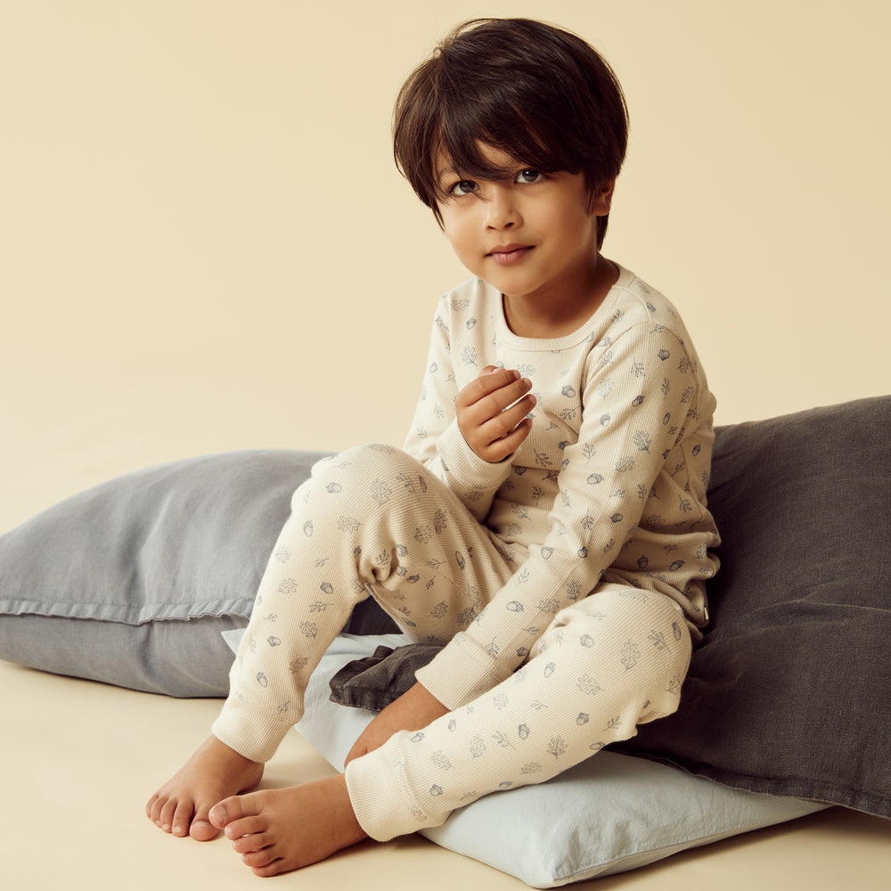 Imagine your little ones wrapped up in the cosy comfort of our two-piece organic cotton pyjama set. Not only is it the perfect gift for older kids, but it's also designed with their sensitive skin in mind. Made from the softest, GOTS certified organic cotton rib, this pyjama set includes a long sleeve top and full length pant, it is bound to keep them snug and warm all night long. Slightly slimmer fit than usual - we recommend sizing up!
