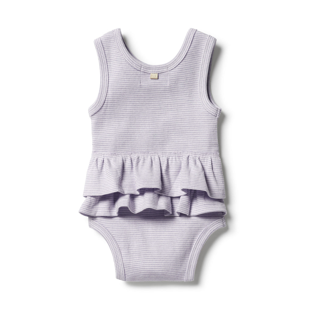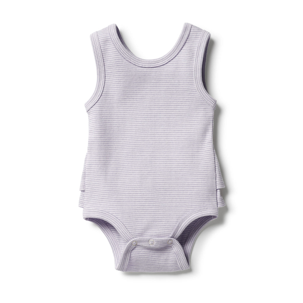 Lavender Organic Stripe Rib Ruffle Bodysuit