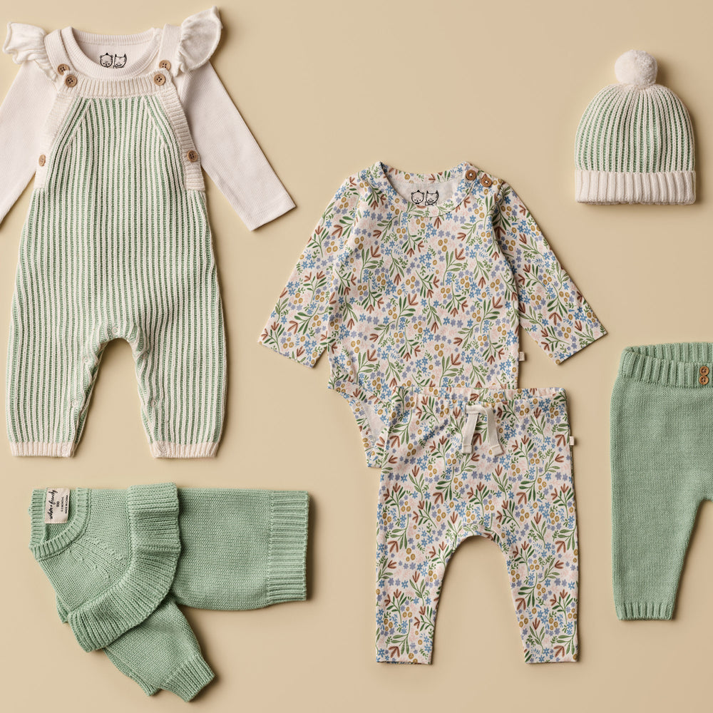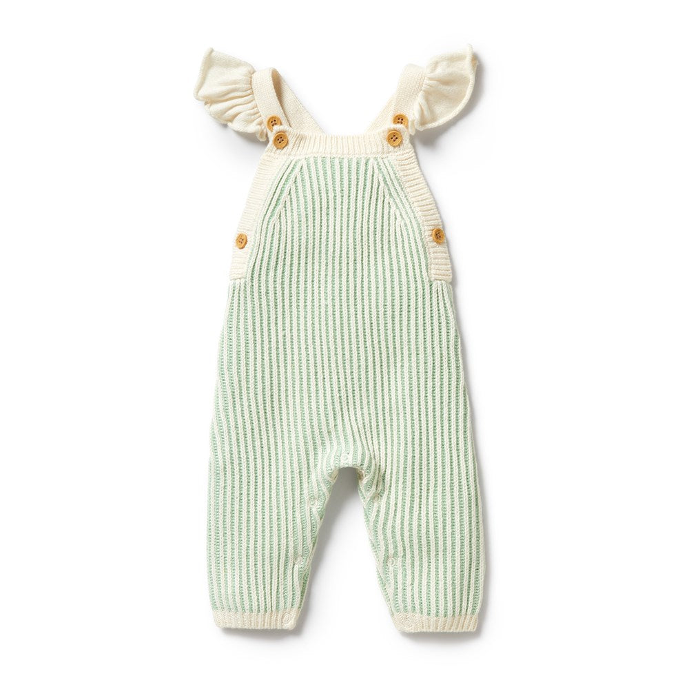 This full length knit overall with ruffle, features button up shoulder straps and a snap leg opening for quick and easy nappy changes. Made from a beautiful blend of Cotton, Bamboo and Wool it's a style you'll want in every colour! Pair back with an organic long sleeve top for an adorable winter layered look.