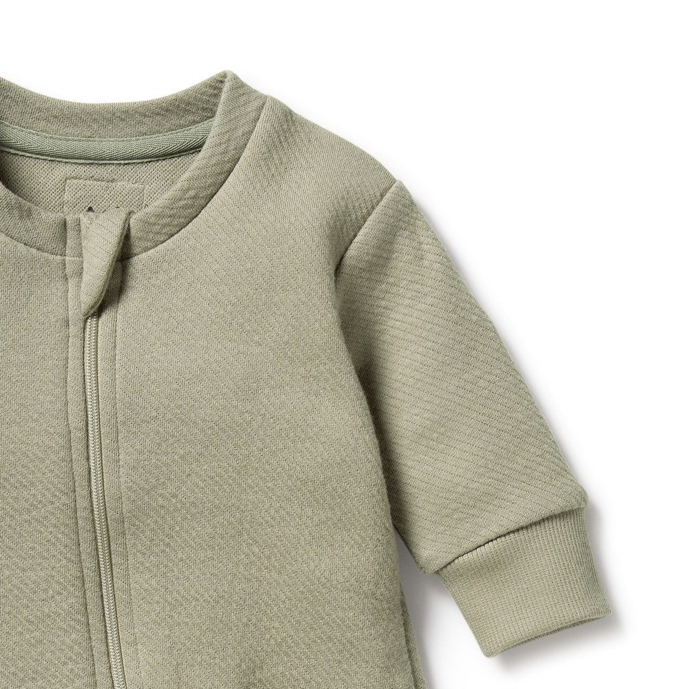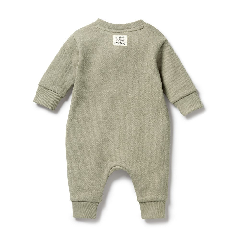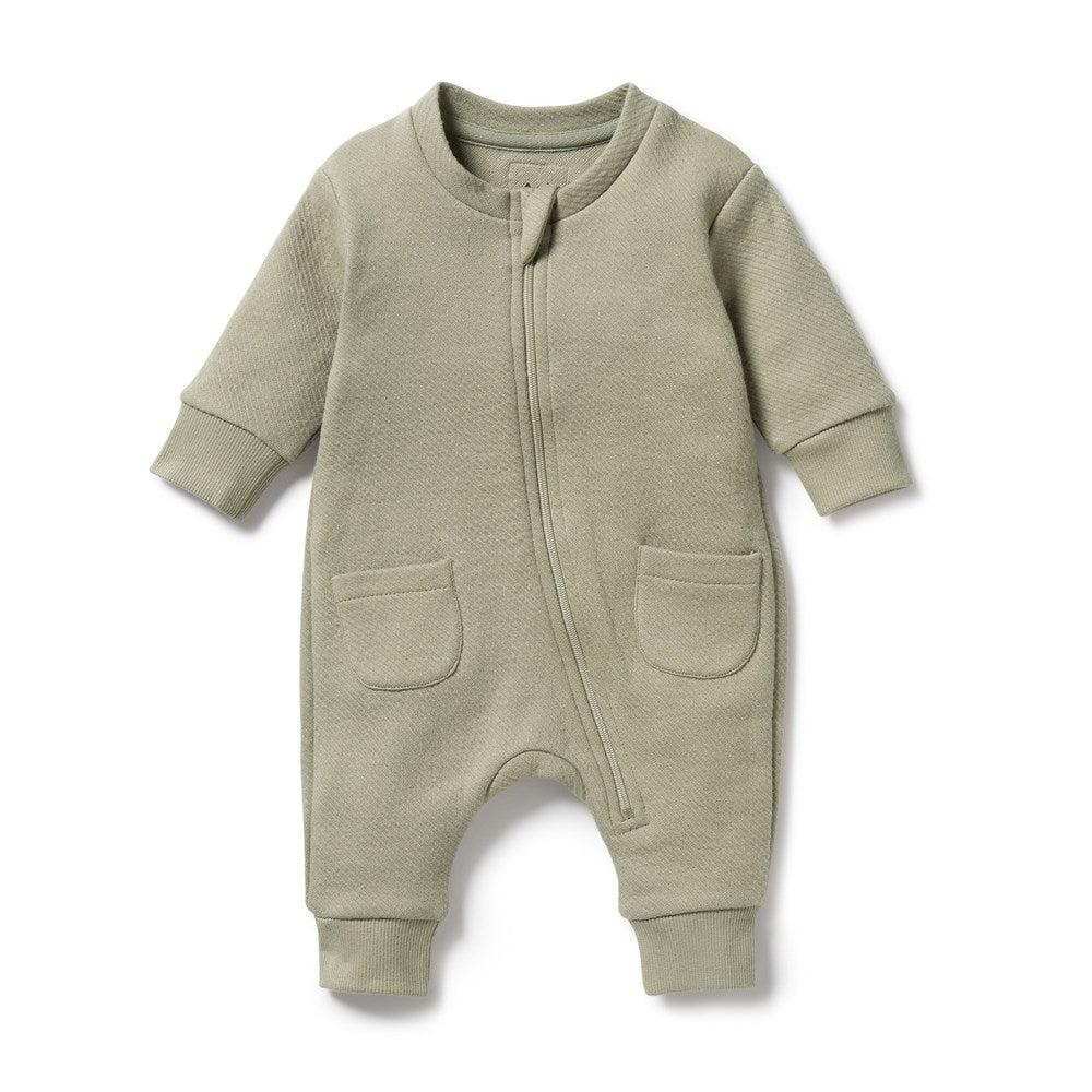 Keep your little one warm, cosy and stylish in this adorable 100% GOTS certified organic cotton quilted growsuit with stylish front patch pockets. Featuring a round neckline and a one way zip for easy dressing.