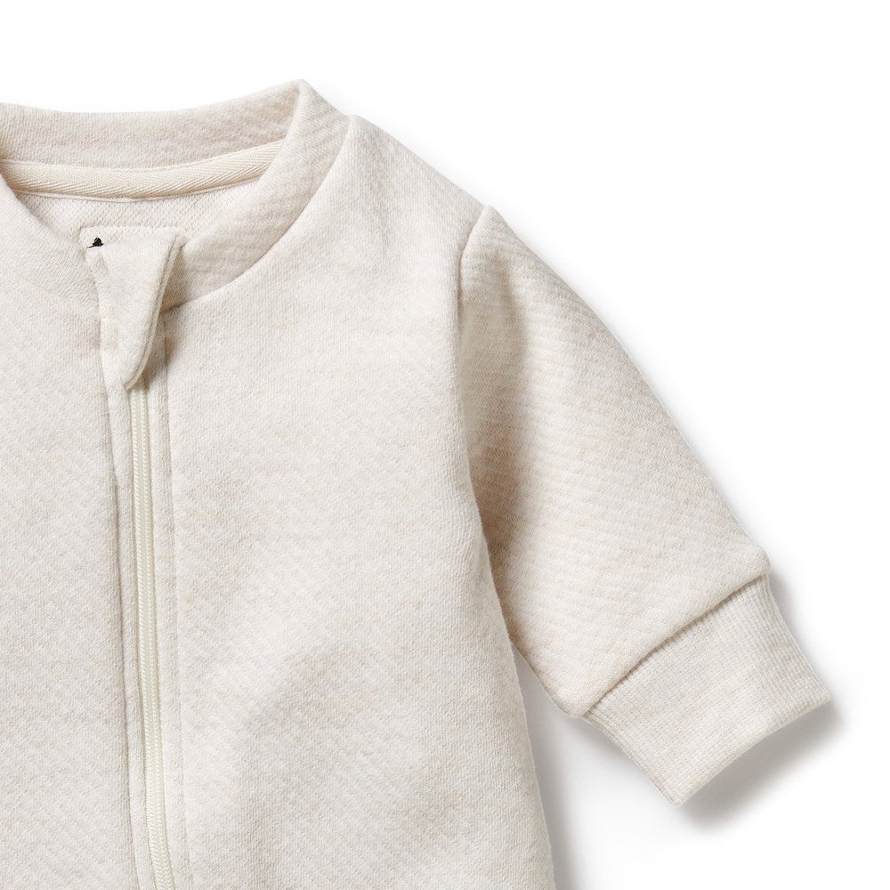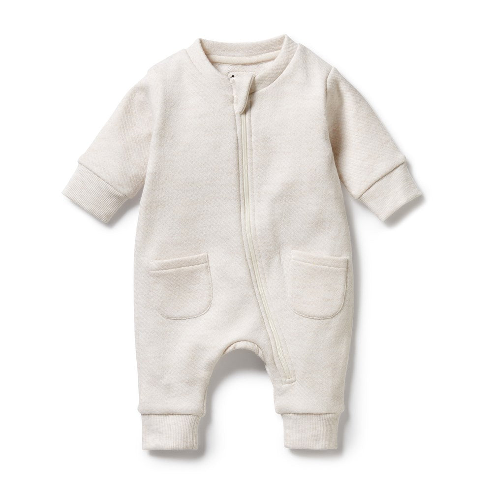 Keep your little one warm, cosy and stylish in this adorable 100% GOTS certified organic cotton quilted growsuit with stylish front patch pockets. Featuring a round neckline and a one way zip for easy dressing.