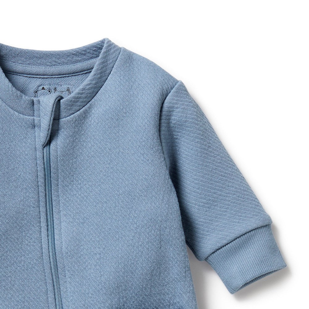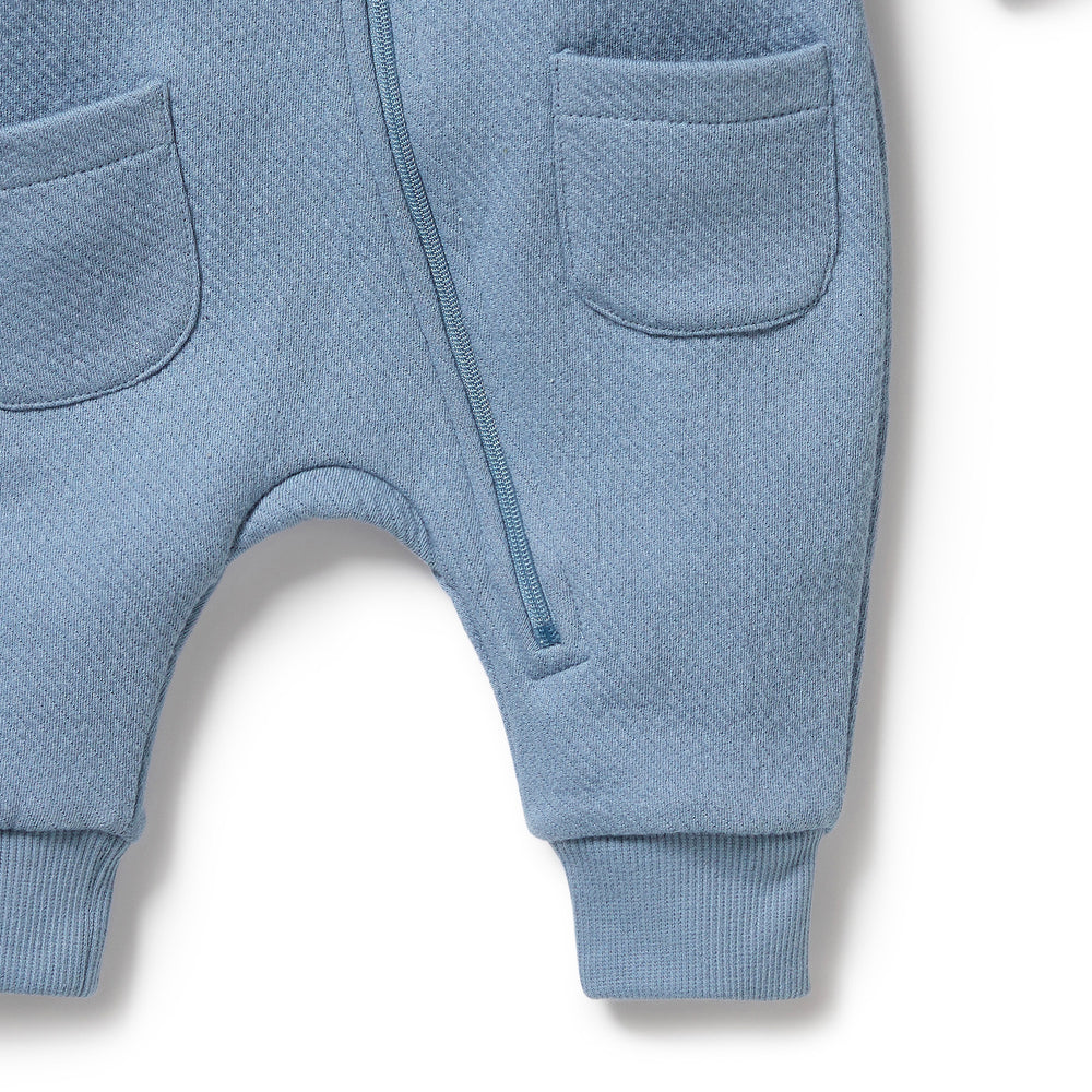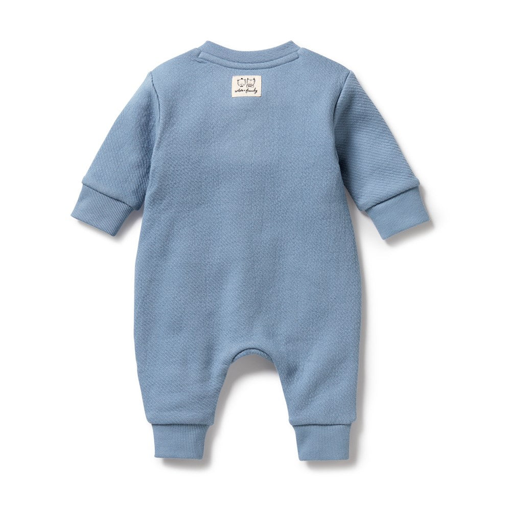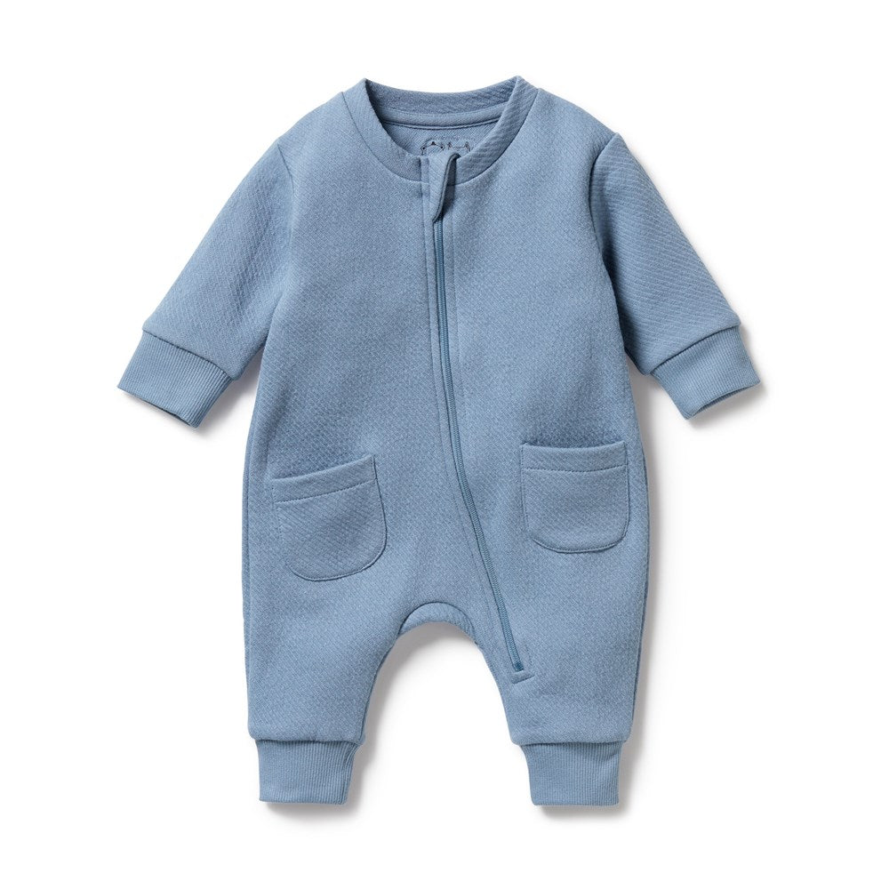 Keep your little one warm, cosy and stylish in this adorable 100% GOTS certified organic cotton quilted growsuit with stylish front patch pockets. Featuring a round neckline and a one way zip for easy dressing.