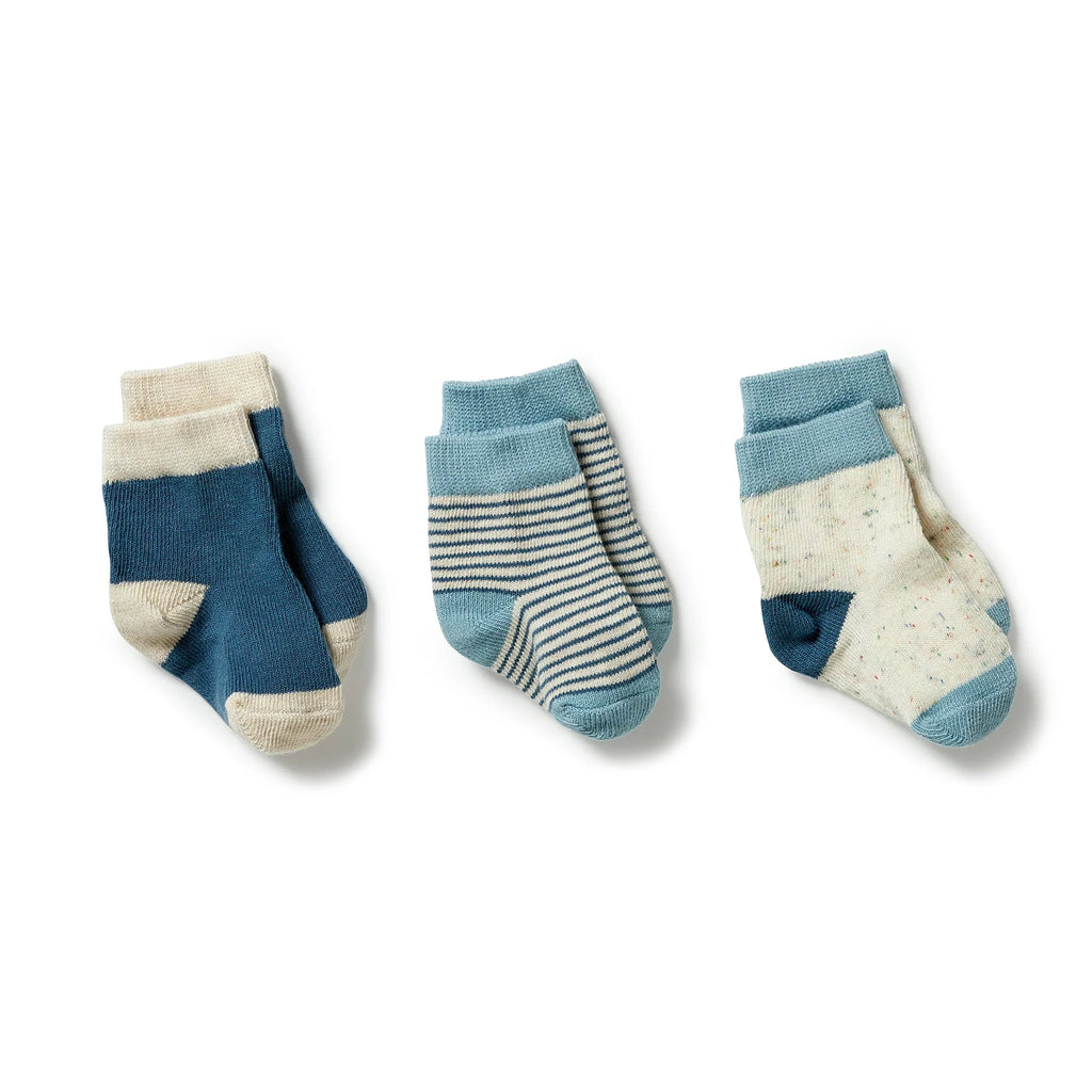 3 pack Baby Socks- Bluestone/ Sterling/ Oatmeal AW23