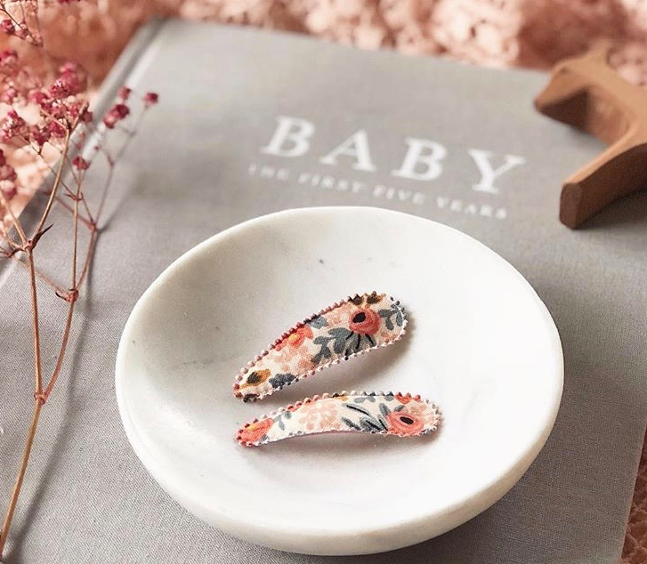 Sold in sets of two these timeless hair clips are finished using a range of Liberty London prints along with a selection of fabrics designed by The Rifle Paper Co.