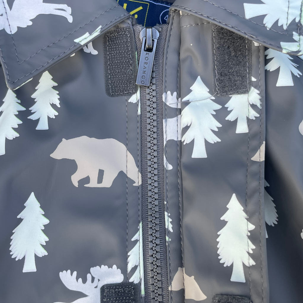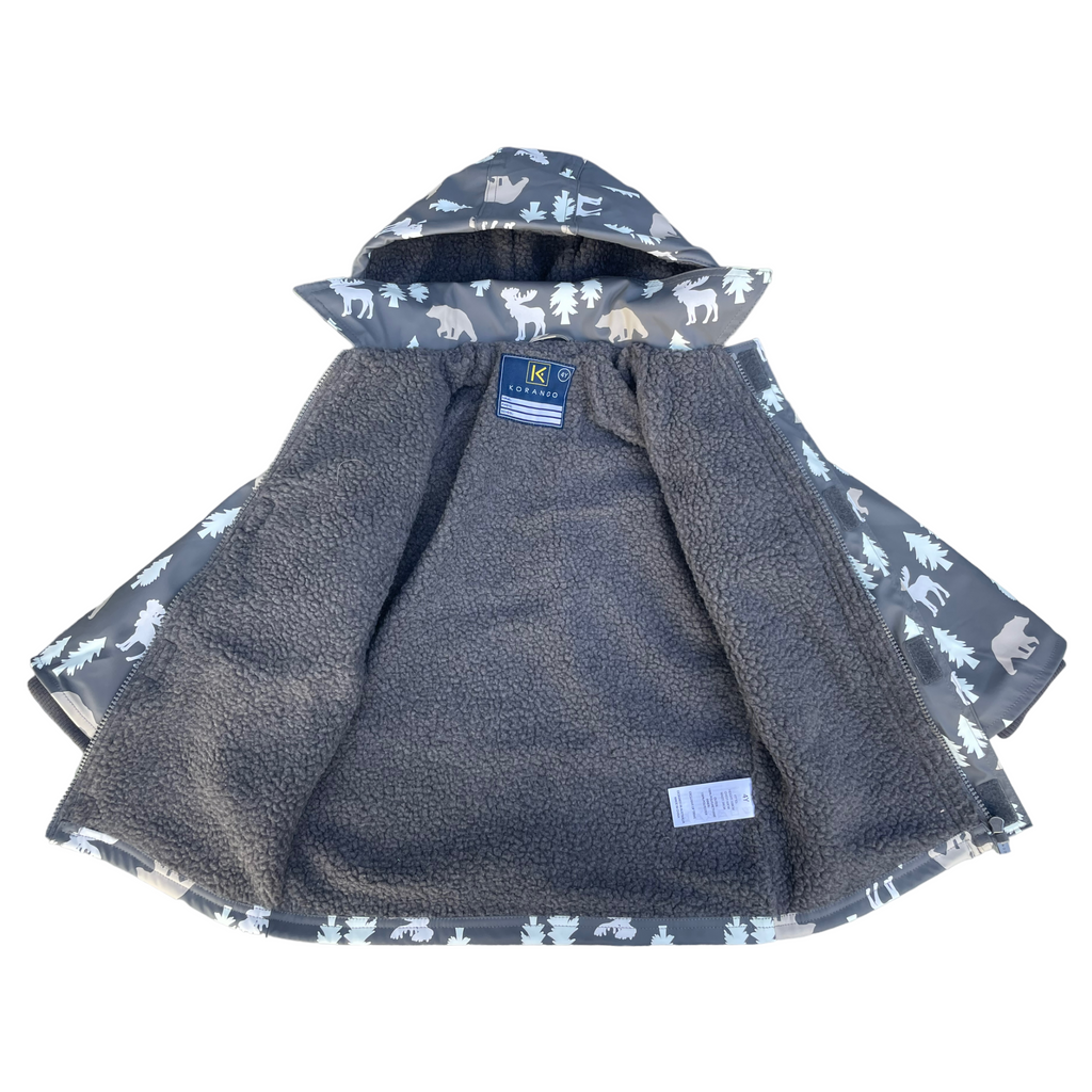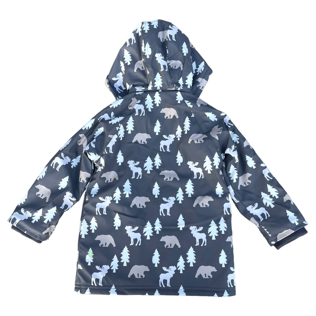 Bear Print Colour Change Sherpa Lined Raincoat Charcoal AW24