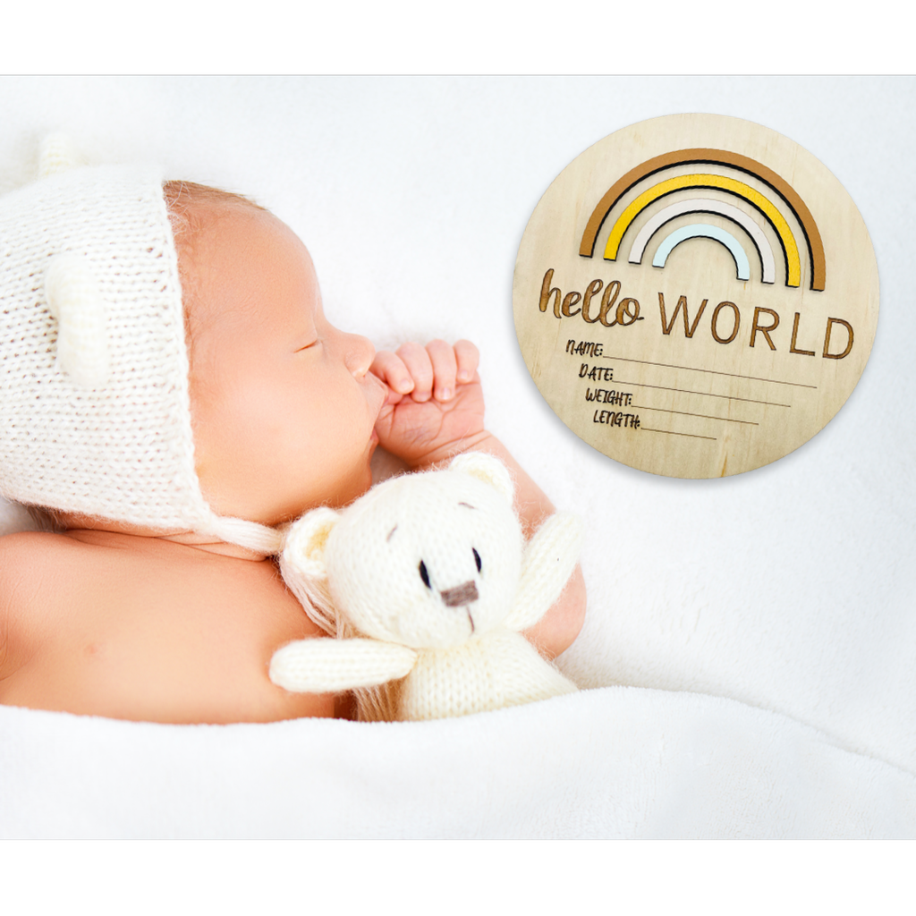 Our Hello World Birth Announcements are the perfect way to celebrate your baby’s arrival.  They come with enough room to write all the details of their birth. This unique statement piece is the perfect addition for your pictures, shelves or nursery.  They also create lasting mementos to pass down from generation to generation.