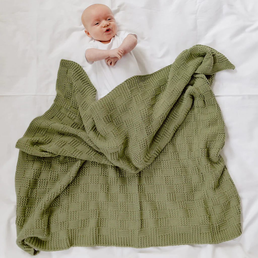Freya blanket is knitted in a chunky design and comes in rust, mint, natural and nude. A beautiful blanket to keep bubba cosy in the winter months.